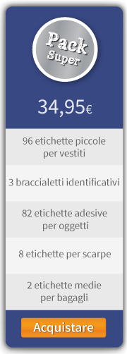 Il Pack Super è include 96 etichette per vestiti, ovvero il doppio che quelle che è possibile trovare nel Pack Pase e nel Pack Plus. Inoltre contiene 3 braccialetti identificativi per bambini, come il Pack Plus, e le stesse etichette per oggetti, scarpe e bagagli che gli altri Packs.